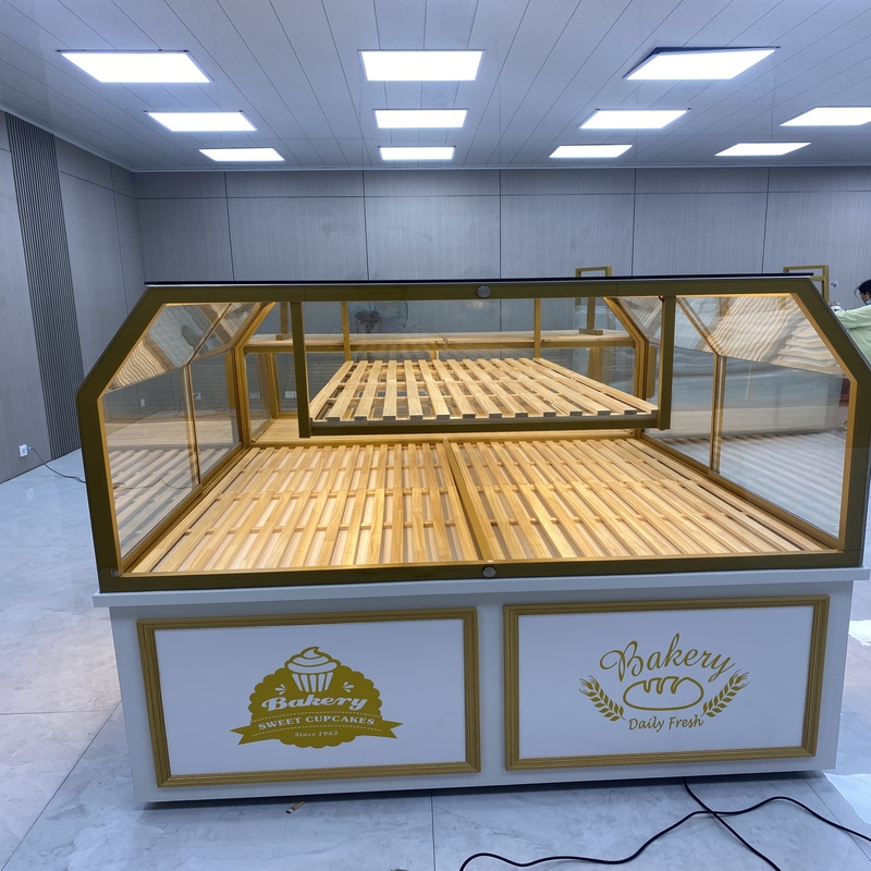 توفر خزانة عرض الخبز الجزيرة المستطيلة هذه حلاً أنيقًا وعمليًا لعرض الخبز اللذيذ. تم تصميمه بجمالية أنيقة وحديثة ، ويوفر مساحة كبيرة لعرض مجموعة متنوعة من الخبز ، وتعزيز جاذبيتها البصرية وجذب انتباه العملاء. لا بد من أي مخبز أو متجر المعجنات!