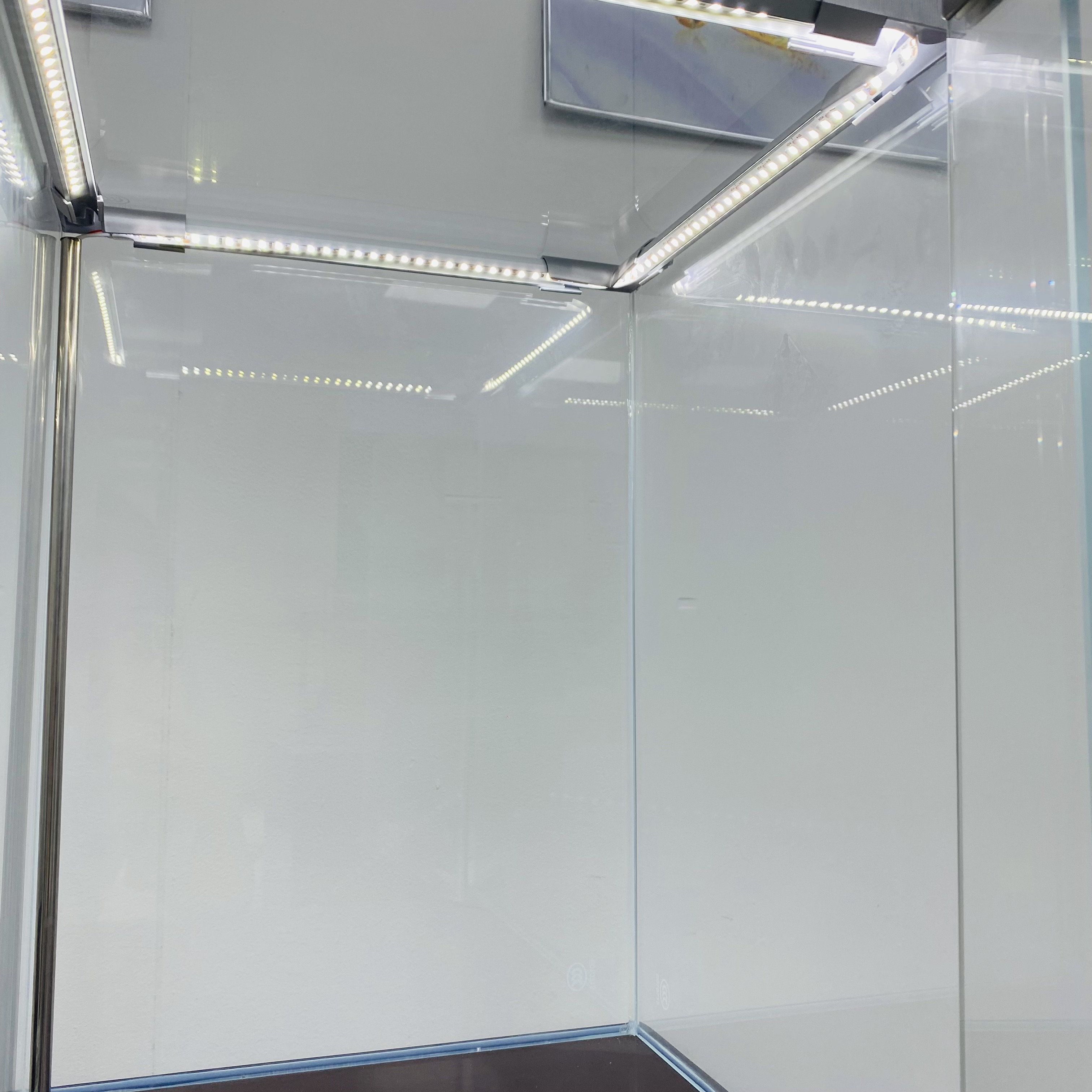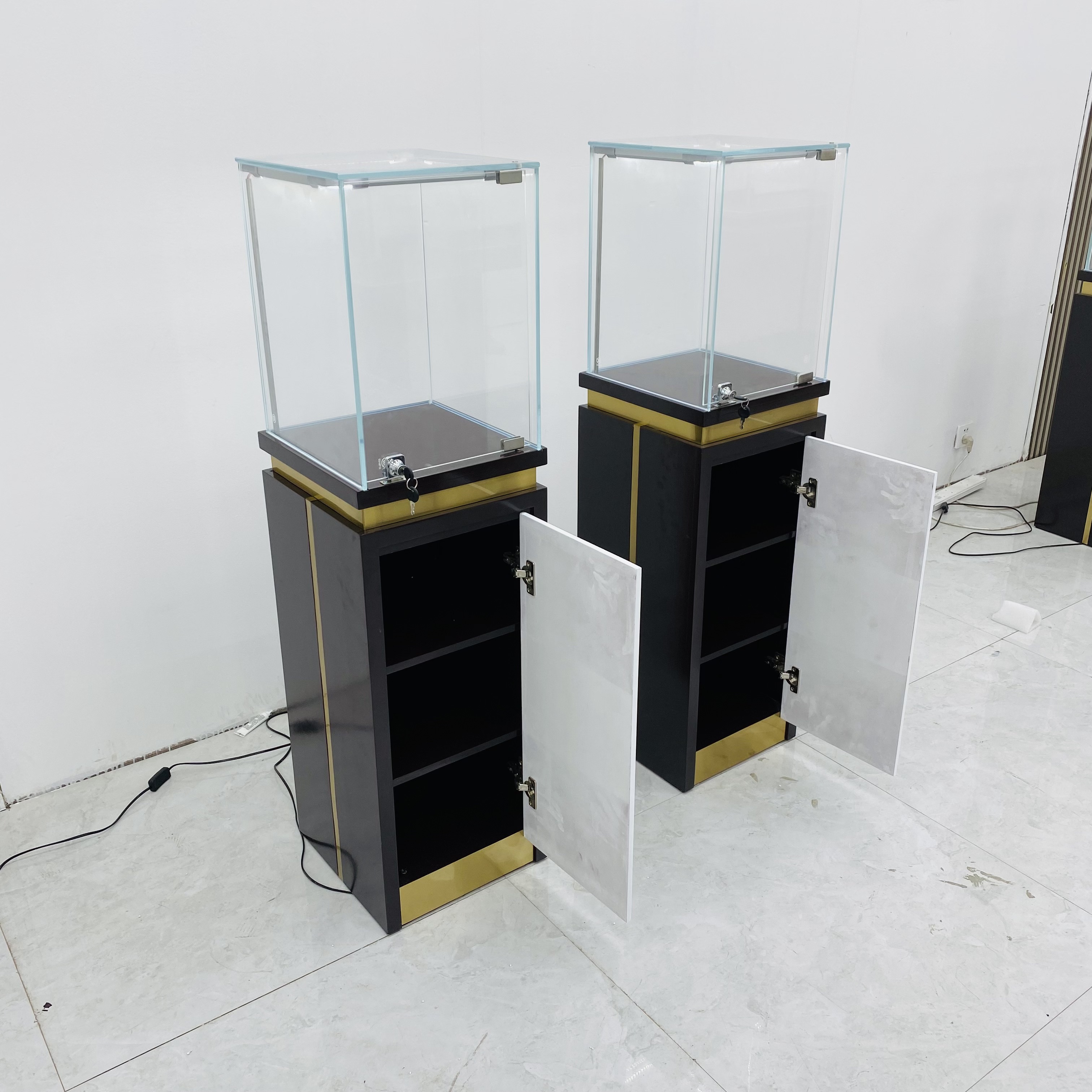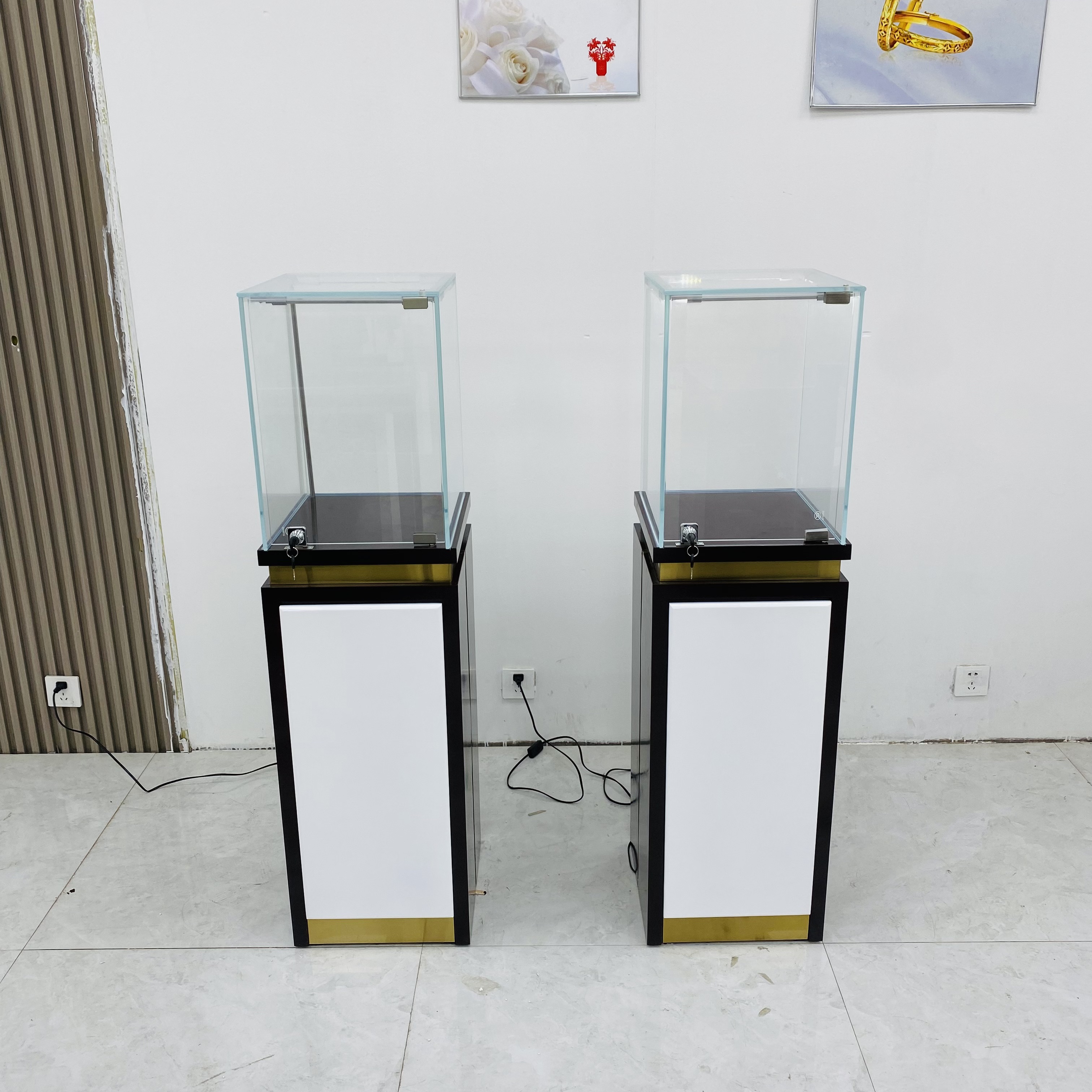إدخال خزانة العرض الزجاجية الخاصة بنا مع شريط خفيف ، مزيج مثالي من الأناقة والوظائف. هذا الحجم هو L55*W55*H140cm ، مما يجعله خيارًا مثاليًا لعرض العناصر الثمينة. إنه يتميز بإطار من الفولاذ المقاوم للصدأ ذو اللون الذهبي الوردي مع لمسة نهائية ، مما يبرز مظهرًا فاخرًا ومتطورًا. تم بناء الخزانة بزجاج مقلوب 8 ملم ، مما يضمن المتانة وإطلالة واضحة للمحتويات في الداخل. تصطف الداخلية بجلد PU الأسود ، مما يوفر خلفية ناعمة ومتناقضة تبرز العناصر المعروضة.