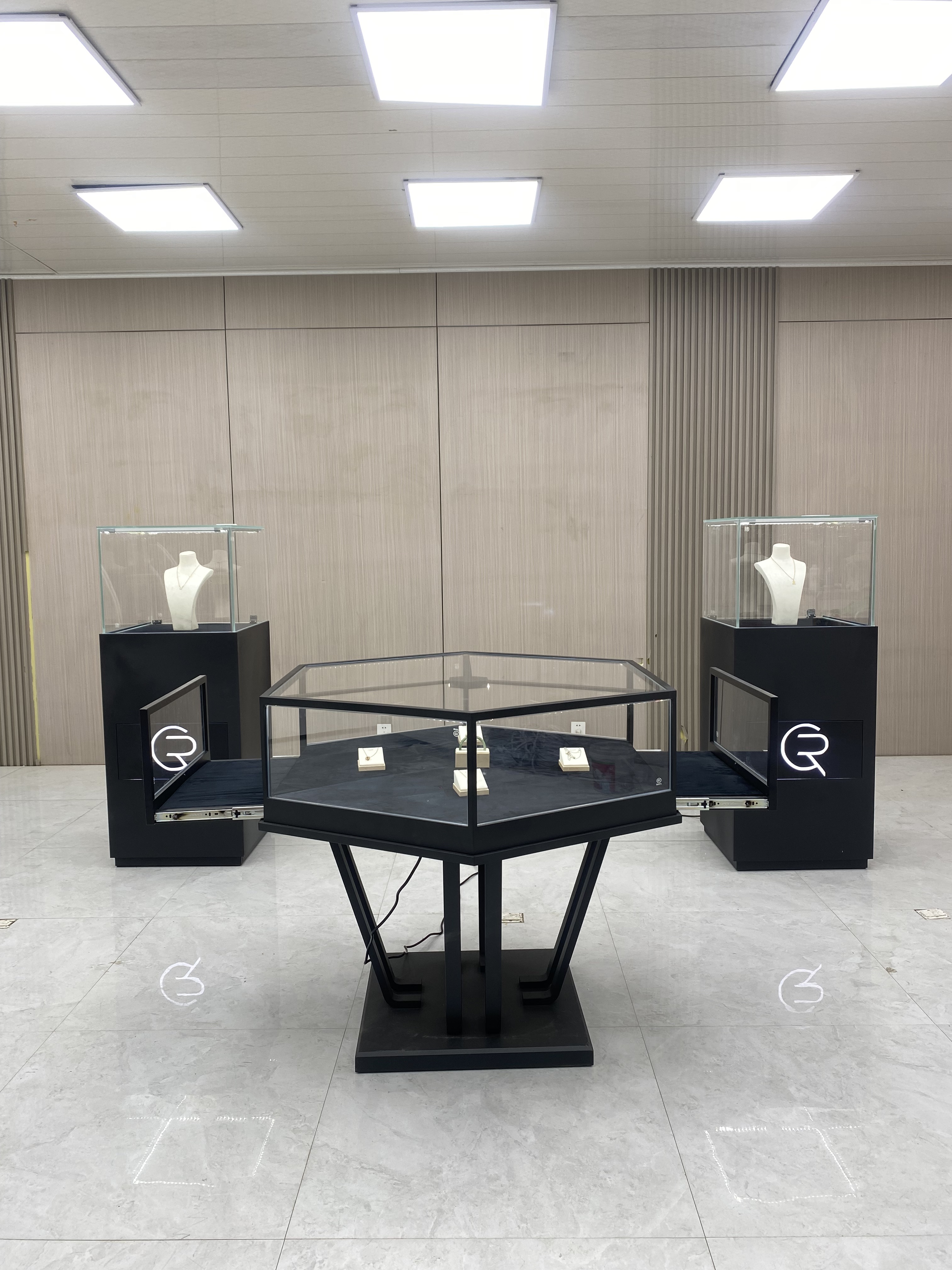 خزانة عرض مجوهرات غير منتظمة مثمن
