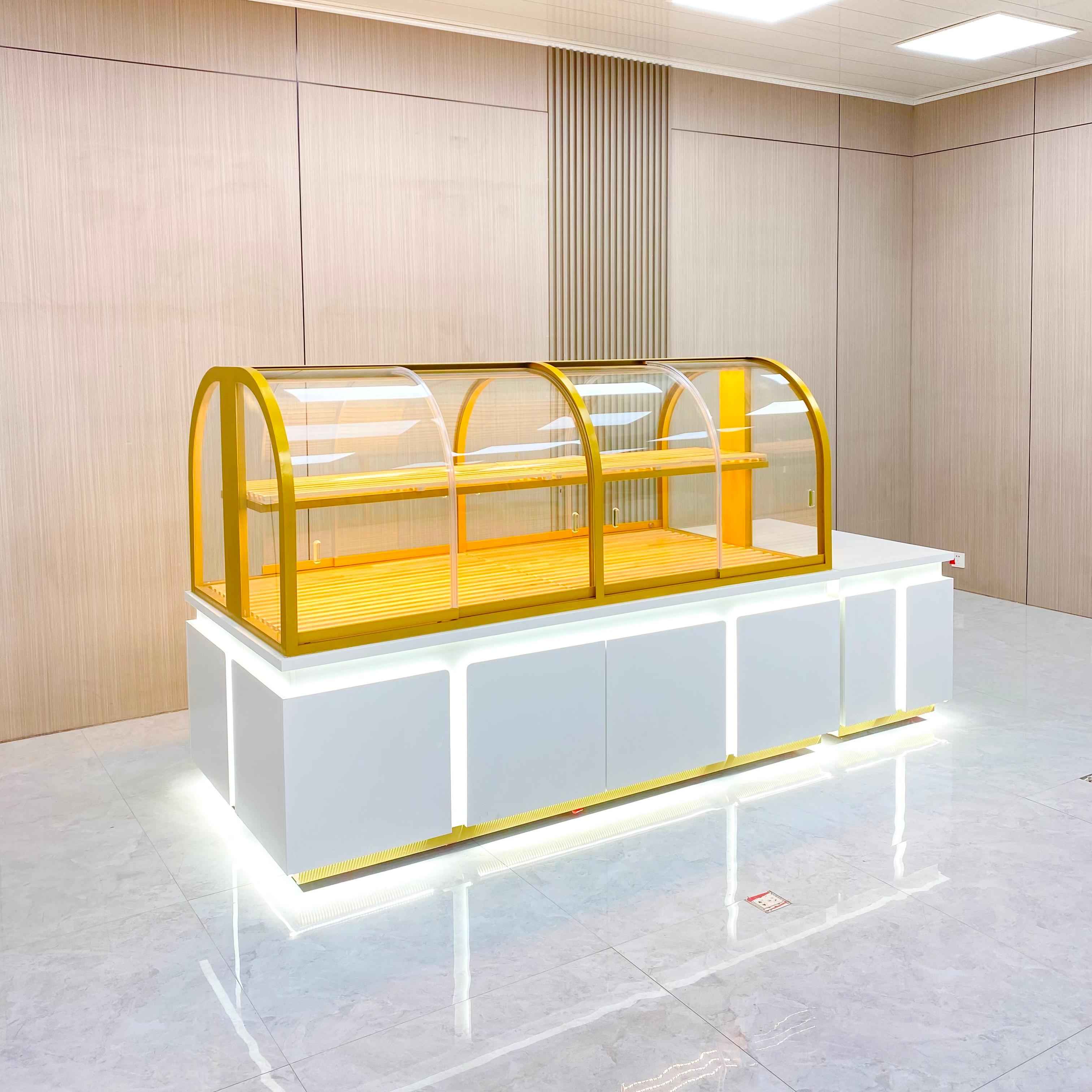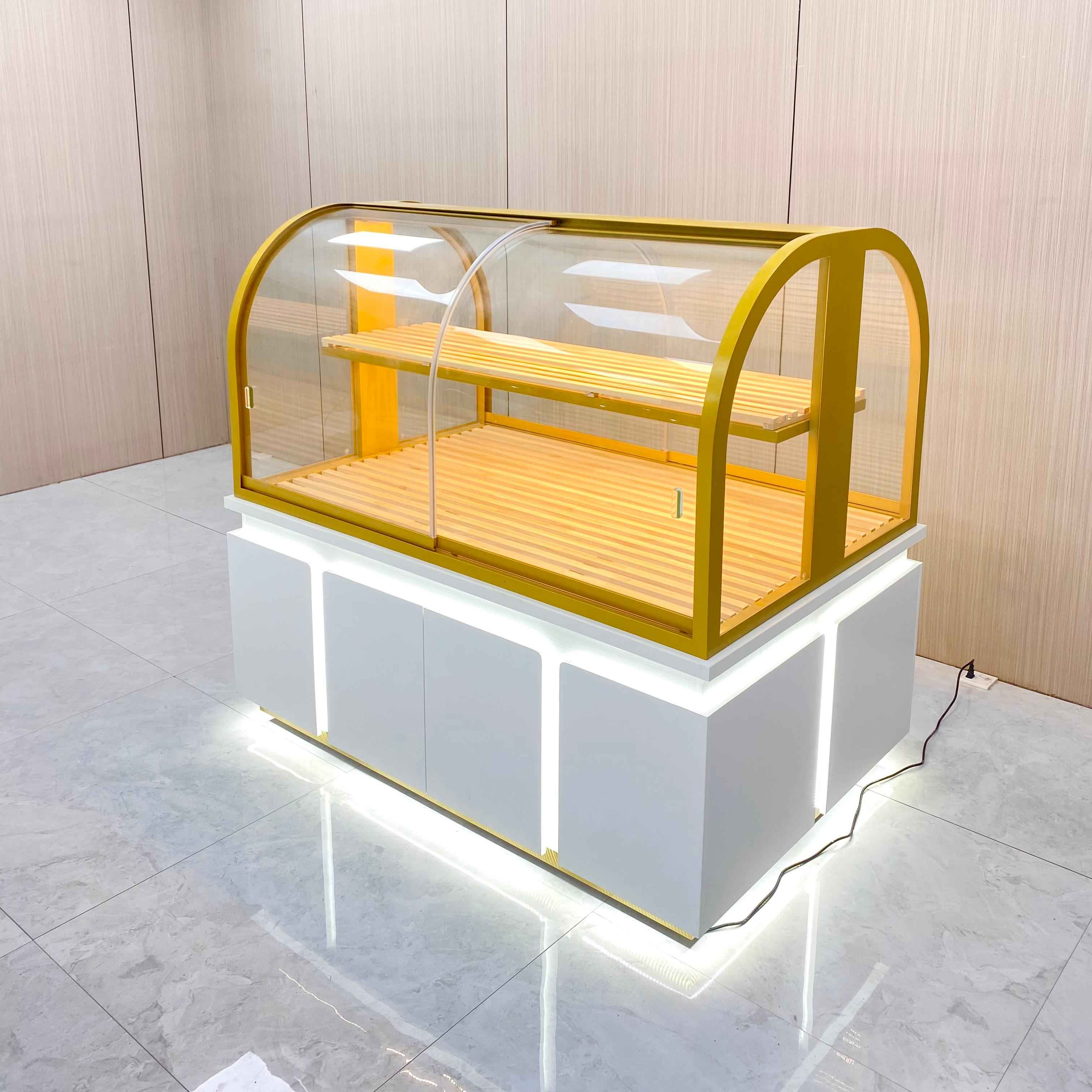 خزانة مخبز النمط البسيطة هي وحدة عرض عالية الجودة. الحجم هو L150*W100*H140cm. إنه يتميز بإطار من الفولاذ المقاوم للصدأ ، والذي يوفر المتانة والمظهر الأنيق. تم تجهيز الخزانة بزجاج مزمن 8 مم ، مما يضمن السلامة ورؤية واضحة للعناصر الموجودة في الداخل. تسمح الأبواب الزجاجية المنزلق بسهولة الوصول مع الحفاظ على المحتويات طازجة ومرئية. يتم تصنيع الخزانة الأساسية بإنهاء الطلاء المخبوز ، مما يضيف إلى الجمالية الشاملة والمتانة للعرض. بالإضافة إلى ذلك ، تم تزويدها بأضواء LED لإلقاء الضوء على الشاشة ، مع تسليط الضوء على البضائع المخبوزة في الداخل بطريقة جذابة.