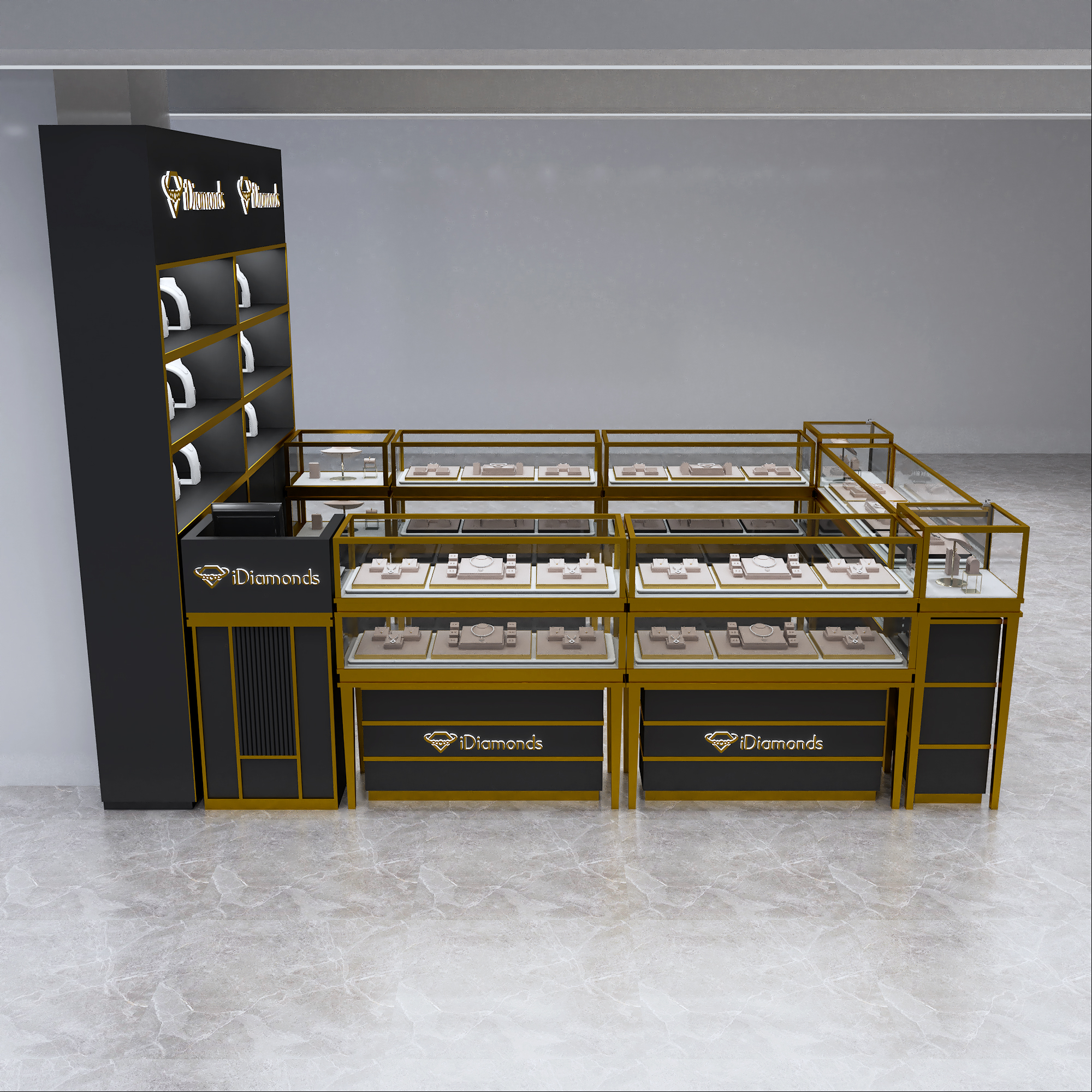 تقديم كشك المجوهرات المزدوجة ذات الطابقين الأسود المتطور ، المصمم لرفع مساحة البيع بالتجزئة الخاصة بك بالأناقة والوظائف. يتميز هذا الكشك الأنيق والحديث بمستويين من الشاشة ، مما يوفر مساحة عرض واسعة لمجموعة المجوهرات الرائعة الخاصة بك. يعد هذا الكشك المصنوع بمواد عالية الجودة ونهاية سوداء أنيقة ، وهو الحل الأمثل لعرض منتجاتك بأناقة. ارفع تجربة البيع بالتجزئة الخاصة بك مع كشك المجوهرات المزدوجة ذات الطابقين الأسود ، المصمم لإقناع جاذبية متجرك الجمالية وتعزيزها.